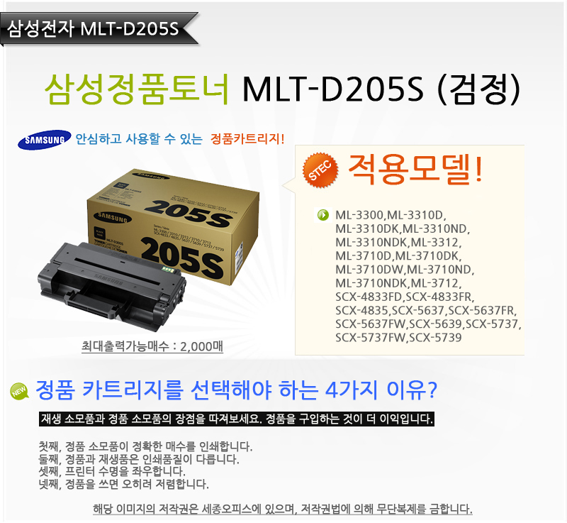 »ï¼ºÀüÀÚ MLT-D205S/°ËÁ¤/Á¤Ç°Åä³Ê